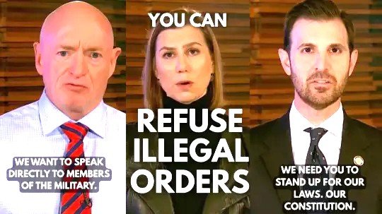 WHAT’S THE PROBLEM? Many news outlets are falsely reporting that this video tells servicemen to disobey ANY order given to them that they don’t agree with. Many Republican leaders are reinforcing that impression in interviews and TV appearances. Many people believe this assessment is true, often without even seeing the video for themselves. Democrats are claiming that Donald Trump is calling for their execution.
